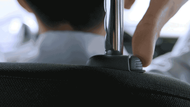 - 重新安装:按住释放按钮,将头枕支柱插入原位后,将头枕调节至适当高度,向上拉头枕确保其锁定到位。