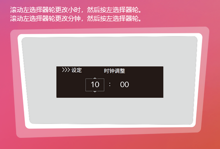 当电源模式处于 ON 时,可以调整时钟显示中的时间。