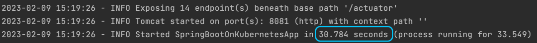 将 CPU limit 设置为 500 millicores ,它开始大约 30 秒: