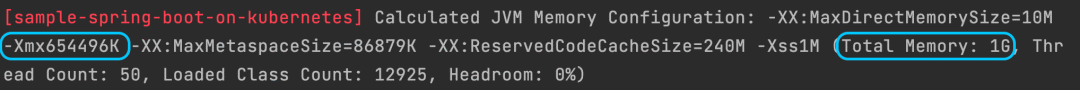 Paketo Buildpacks 目前是构建 Spring Boot 应用程序的默认选项(使用 mvn spring-boot:build-image 命令)。让我们为我们的示例应用程序尝试一下。假设我们将内存限制设置为 512M,它将在 130M 的级别计算 -Xmx 。
