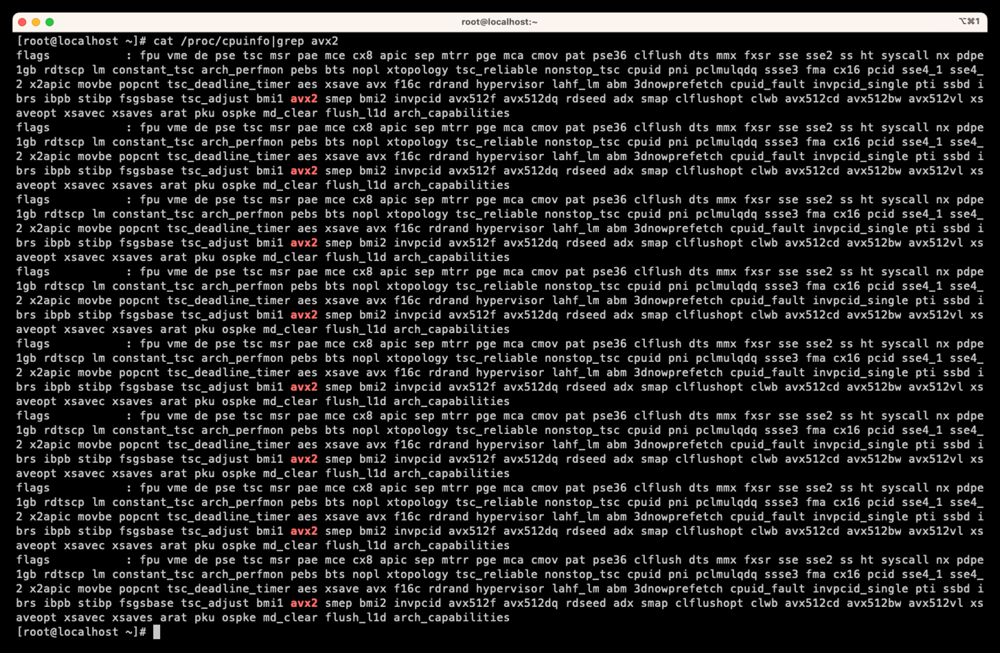 cat /proc/cpuinfo|grep avx2