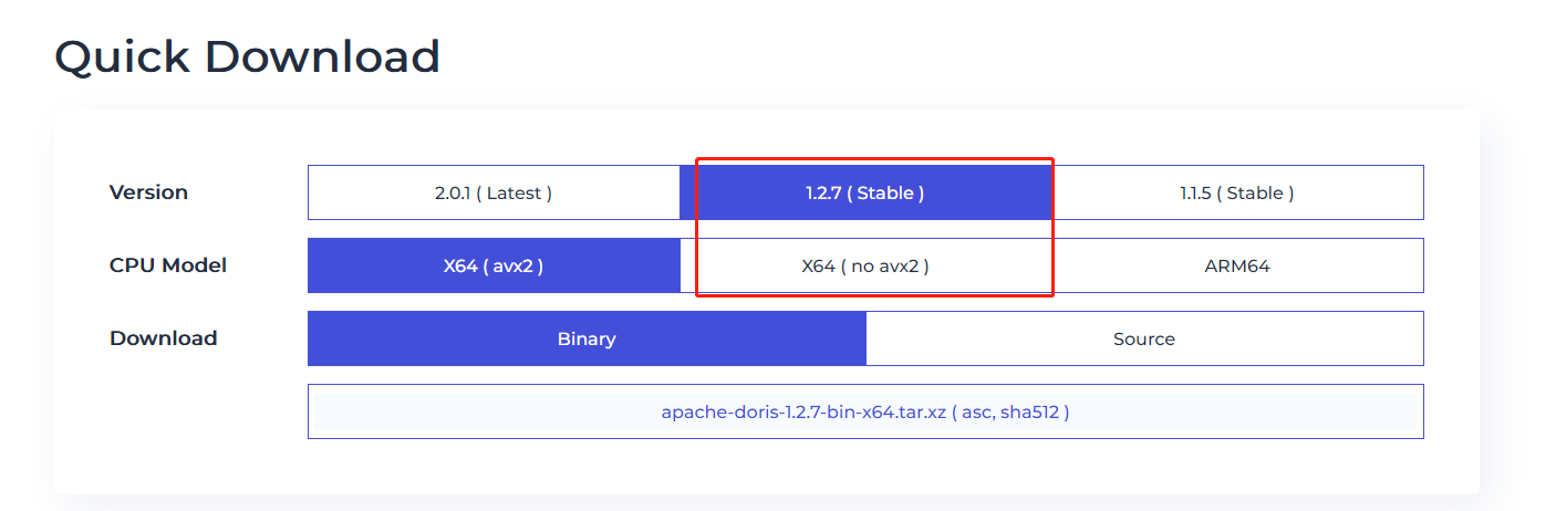3.使用外置的Doris ,下载使用不支持 AVX2 指令Doris进行部署