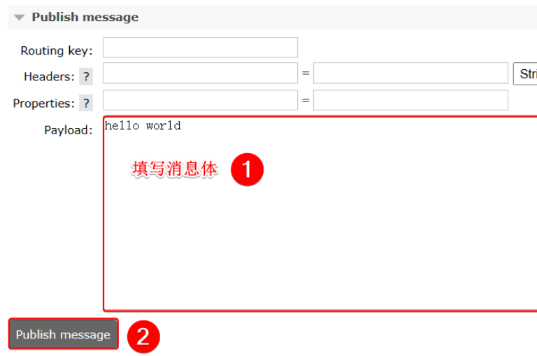点击任意交换机,即可进入交换机详情页面。可以利用控制台中的publish message 发送一条消息:
