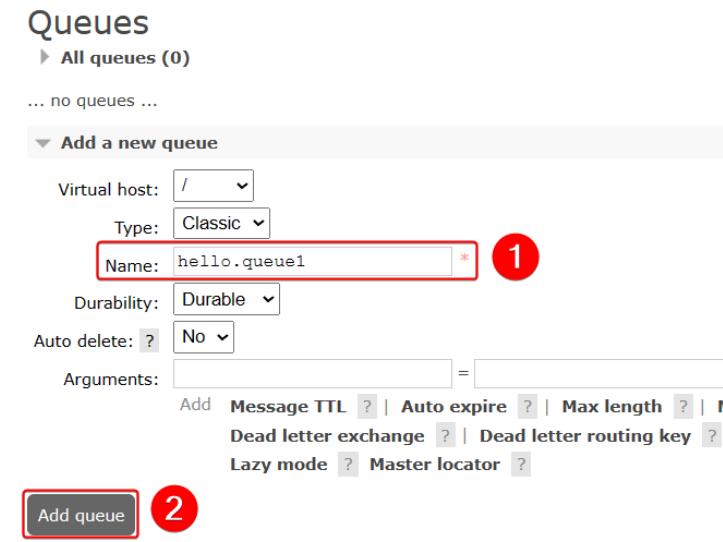 再以相同的方式,创建一个队列,命名为hello.queue2,最终队列列表如下: