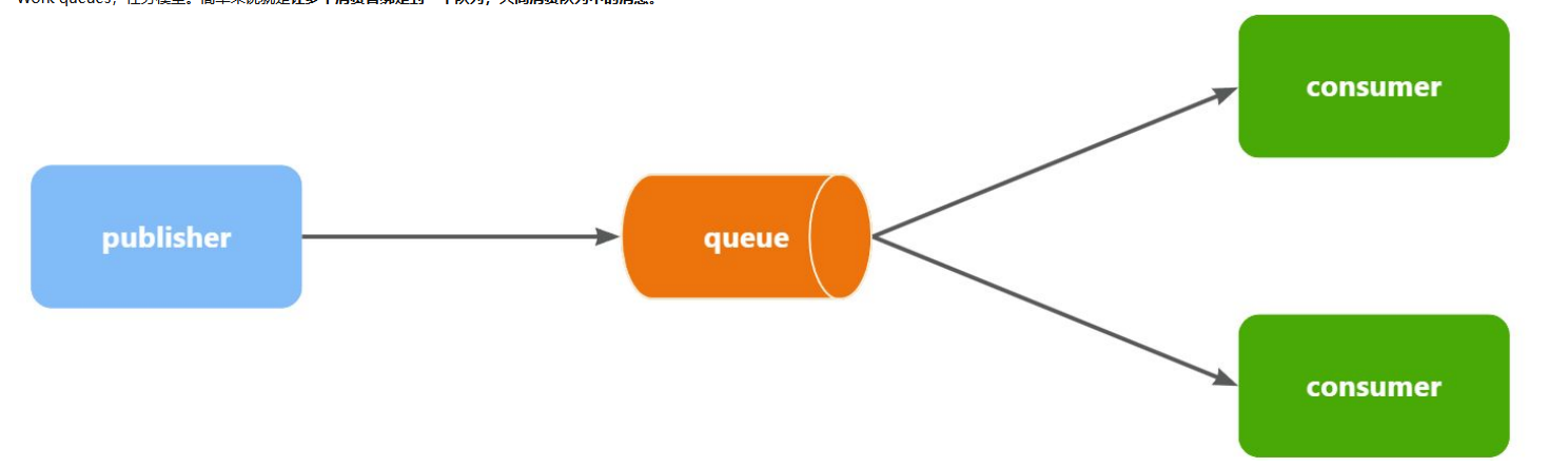 Work queues,任务模型。简单来说就是让多个消费者绑定到一个队列,共同消费队列中的消息。
