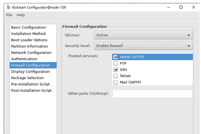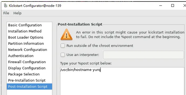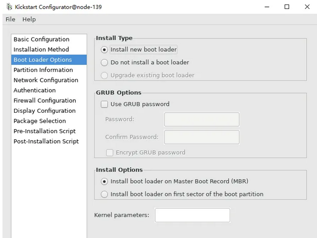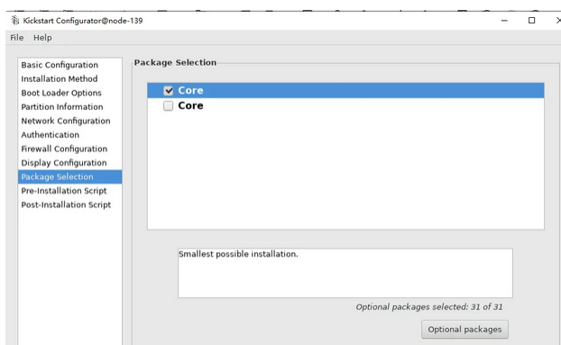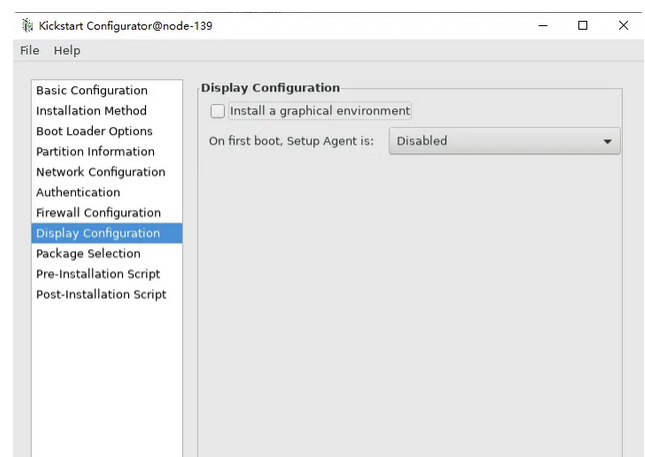 我们可以通过图形界面进行系统基本设置、安装方式管理、启动方式配置、分区配置、网络配置、认证配置、防火墙设置、显示配置、安装包配置。除此之外,还可以编写系统安装前及安装后所需运行的脚本。
