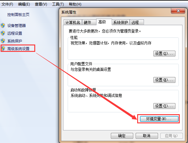 在我的电脑右键→属性→高级系统设置→环境变量