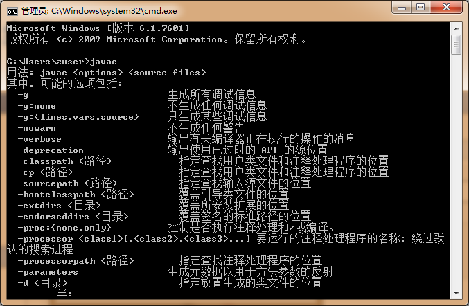 完成配置后,在cmd.exe中输入javac或者java -version,显示如下信息则证明jdk安装成功