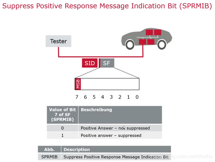 肯定响应抑制位是在Subfunction里的这个字节的最高位,我们把它叫做肯定响应抑制位。功能寻址下在Request中SubFunction的最高位bit7若置0x01,正响应会被抑制,即不回复正响应,负响应正常回复。