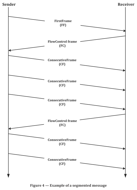 - FF N_PDU通过首帧协议控制信息(FF N_PCI)识别。 FF N_PDU应由发送网络实体发出,并被所有的网络实体接收。只有通过N_AI寻址到的唯一的实体,在整个分段帧传输期间应处理该请求。其他未被寻址到的节点应拒绝挂起中的连接。通过FF N_PDU可识别分段帧的第一个N_PDU,由网络发送实体发送,由接收网络实体接收。接收网络层实体在接收到FF N_PDU时,开始组装分段帧。