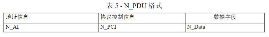 协议数据单元(N_PDU)使得网络层一个节点可以与网络层一个或更多节点间数据传递(对等协议实体)。所有的N_PDU由三个字段组成,见表2。