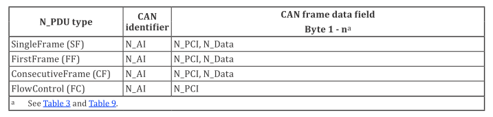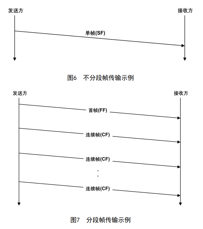 ——首帧(FF N_PDU);——连续帧(CF N_PDU)。