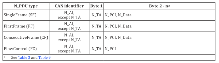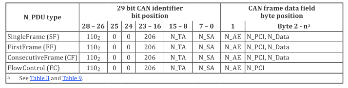 - N_NAD包含了由请求/响应寻址的从节点以及寻址类型(物理寻址、功能寻址、广播式)。这些参数提到了寻址信息。