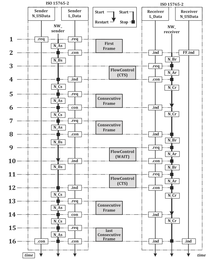 接收方L_Data.con:数据链路层向传输层/网络层确认 CAN 帧已被确认;接收方停止N_Ar定时器并启动N_Cr定时器