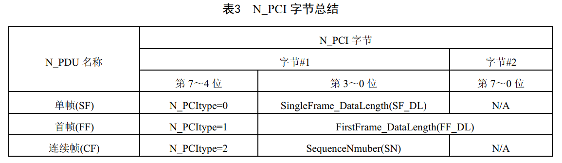 网络层不同节点对等协议实体间通信通过交换N_PDU完成。有三种不同类型的传输层协议数据单元:——单帧(SF N_PDU);