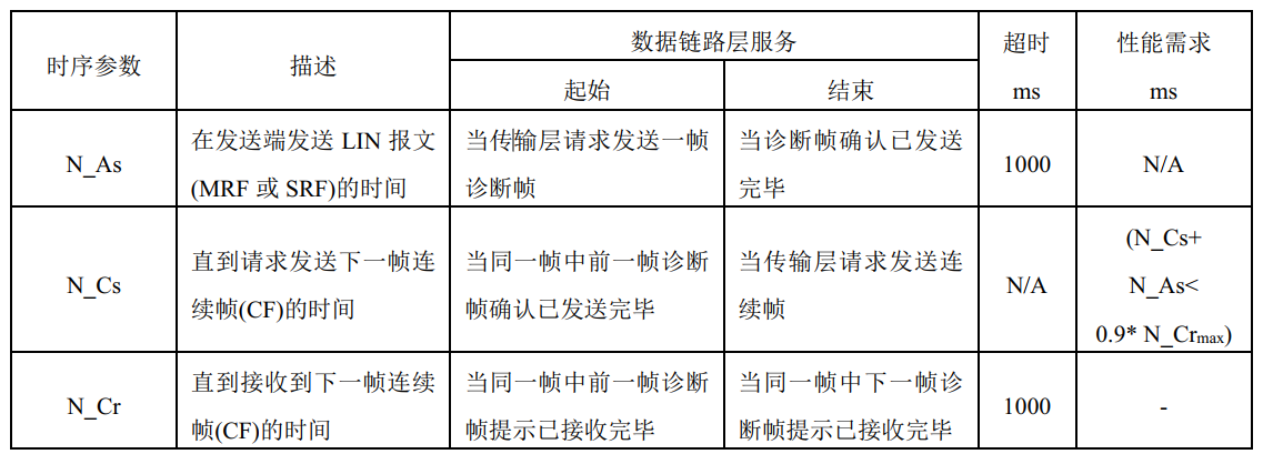 传输层(基于ISO 17987-2) 时序参数定义在下表:
