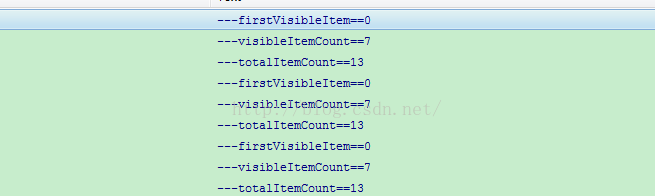 firstVisibleItem :第一个可见item所在的位置,滑动一个,增大一个值。