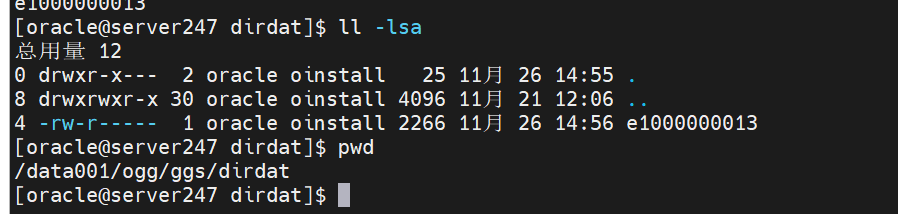 重新启动pump进程,pump服务在目标端自动重新创建了新的文件