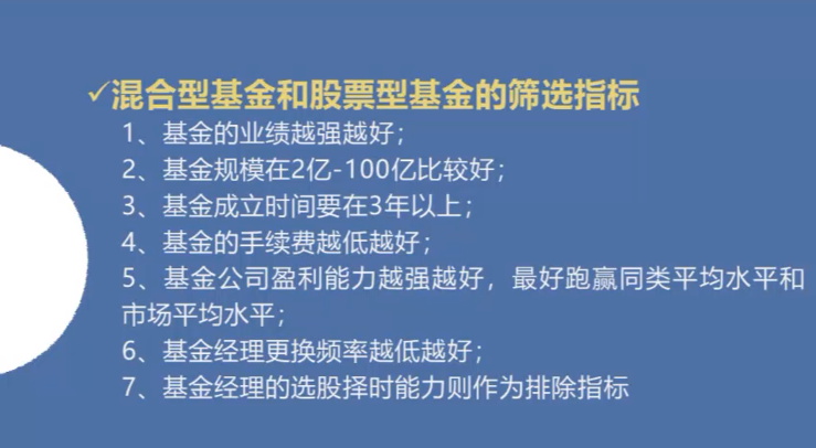 3-5年以上,累积3年以上收益率,基金规模适中5-100亿,购买基金产生的费用,不要频繁更换基金经理(最少不能低于半年)