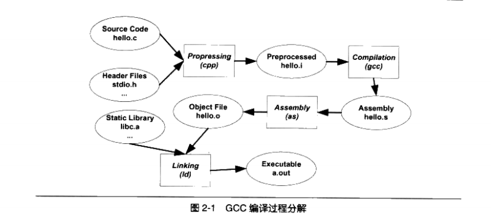 gcc -E hello.c -o hello.i