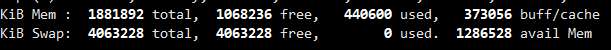 内存信息,默认单位KB, 大写字母E total总共有多少内存 free 空闲内存 used 已经被用了 buff/cache:缓存 buff 缓冲区 cache 缓存 Swap 交换分区 用于临时存放内存中的数据 avail Mem 可用的内存,包括物理内存可用内存和交换分区可用用内容 按小写字母e,切换进程列表中内存相关数据的单位