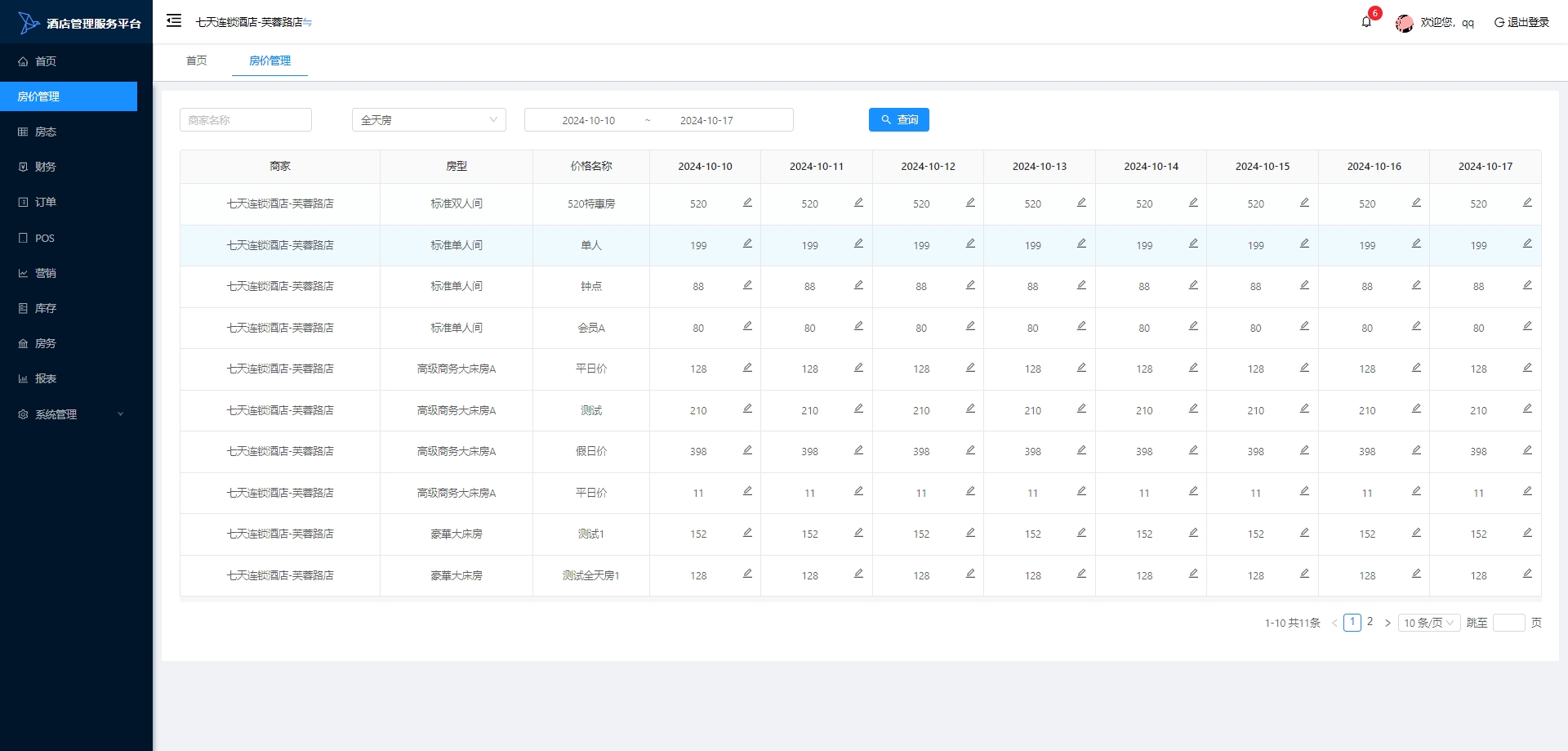 房价管理:设置和管理酒店的房价策略,包括不同房型的价格、季节性价格调整及促销活动的价格设置。