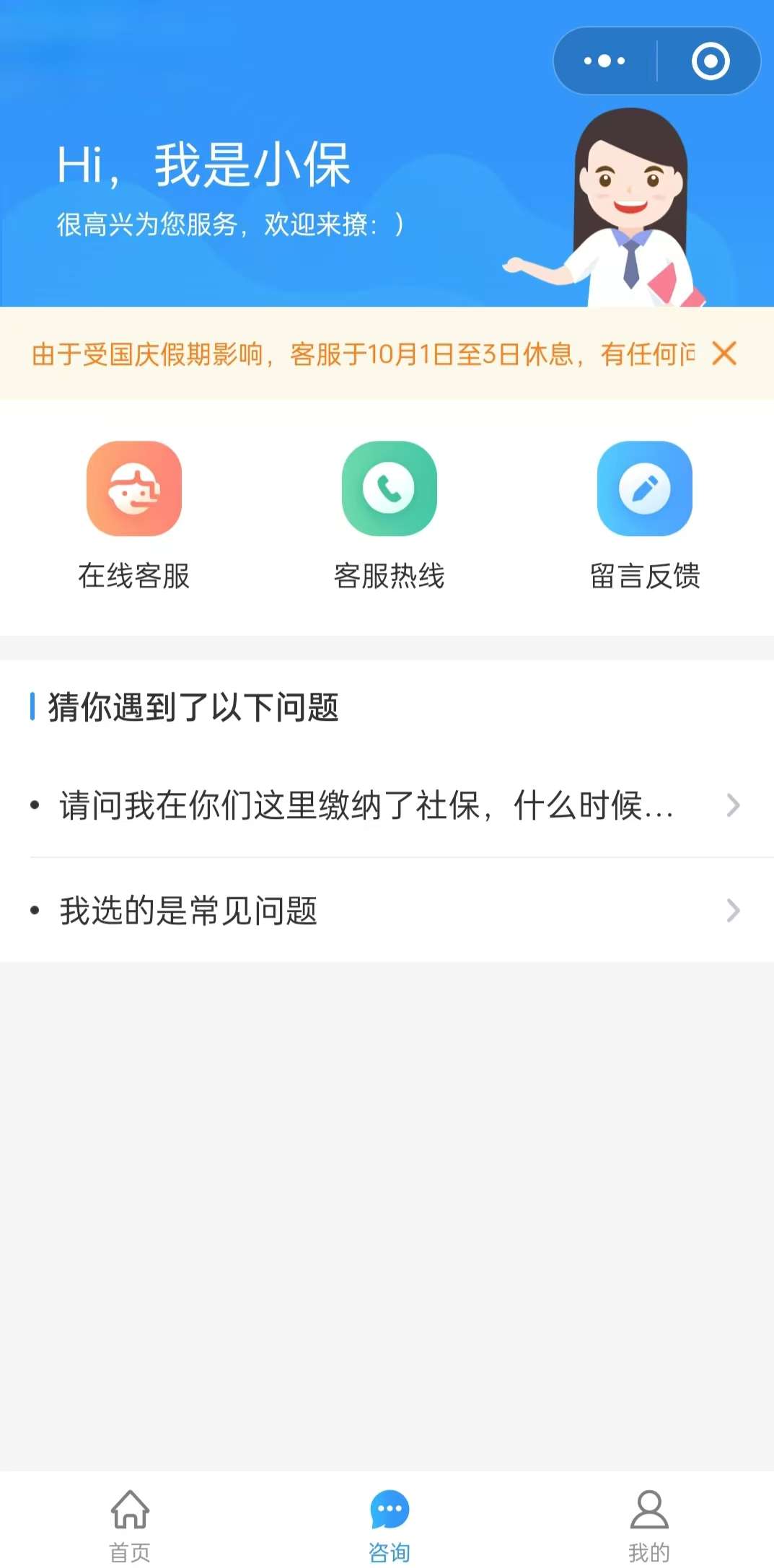 在线客服:提供在线客服的入口,用户可以点击进行实时咨询。