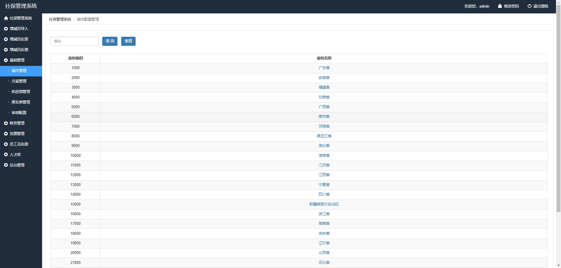 城市管理:维护企业运营所在城市的相关业务信息。