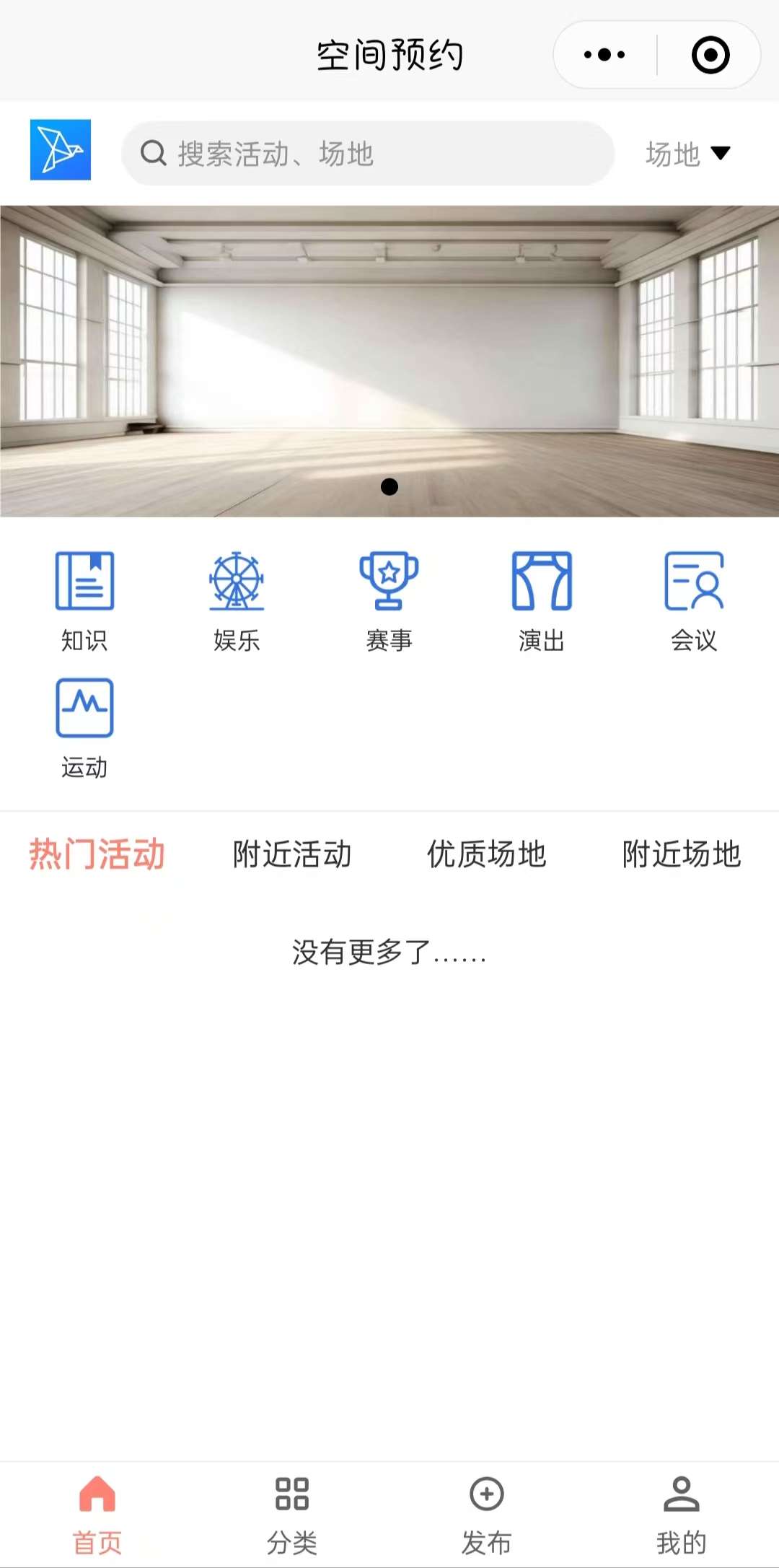 分类:提供空间预约、知识、活动、场地、娱乐、赛事、演出、会议和运动等多功能服务的入口。
