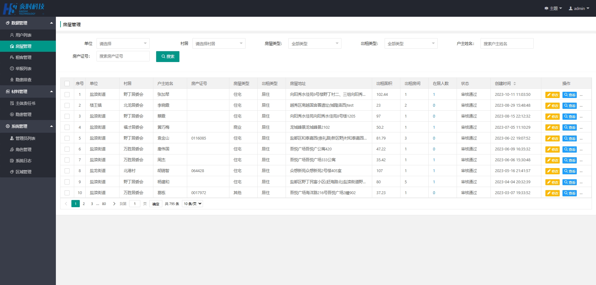 房屋管理:管理房屋的相关信息,包括租赁状态、维护记录等。