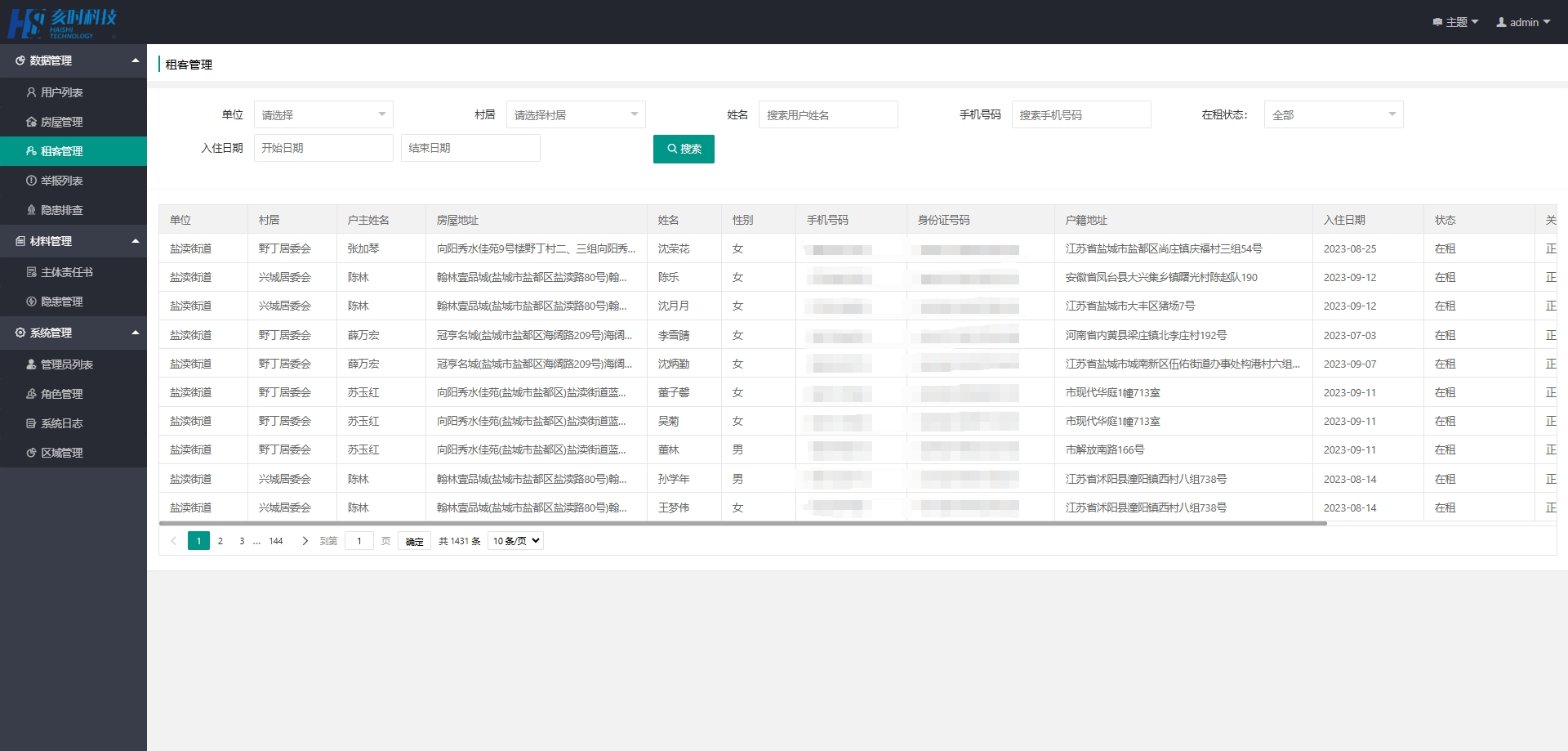 租客管理:用于管理租客信息,包括租客的个人信息、租赁合同、支付记录等。