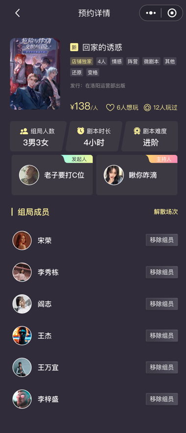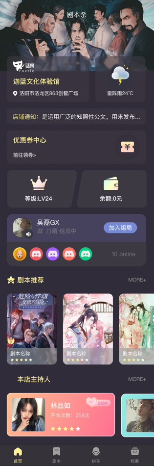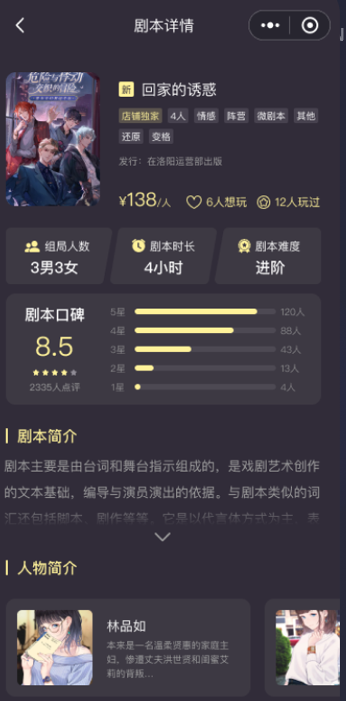 - 本店剧本:展示门店特色剧本,方便用户选择。
