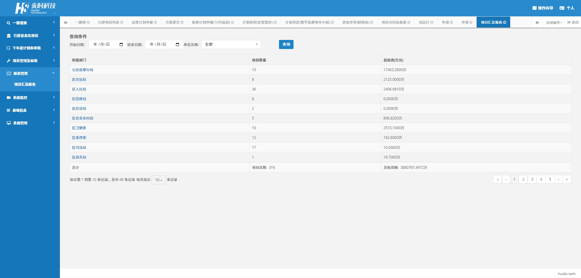 项目汇总据表:提供项目的汇总数据报表,便于项目分析和决策。