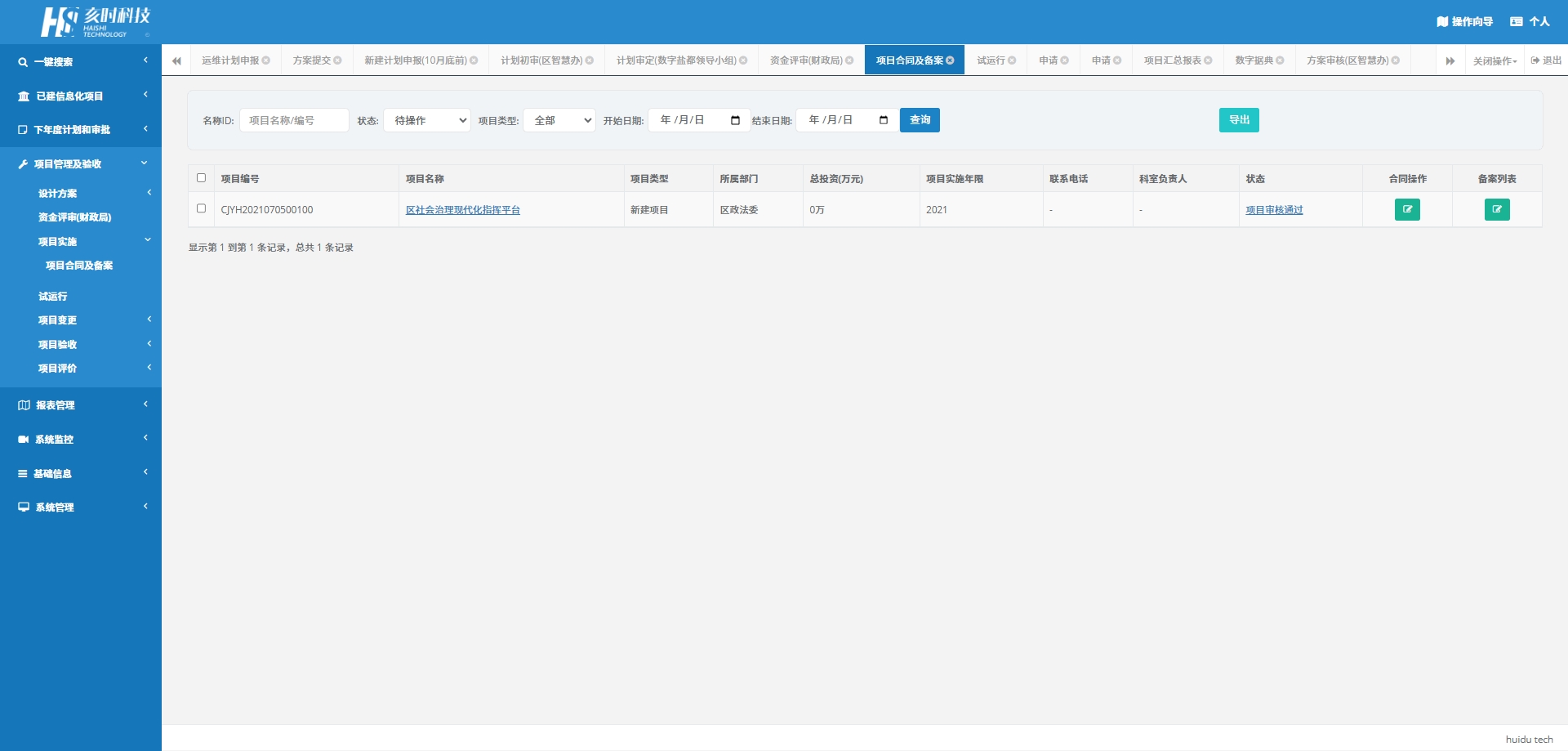 项目合同及备案:管理项目合同的签订和备案,确保项目合法性。