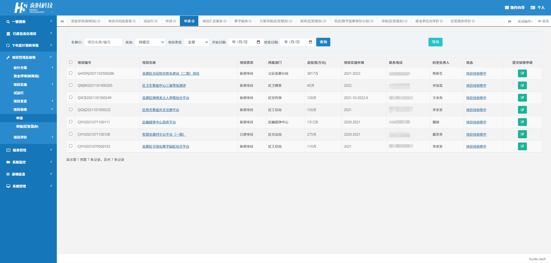 申请:提交项目验收的申请,供相关部门审核。