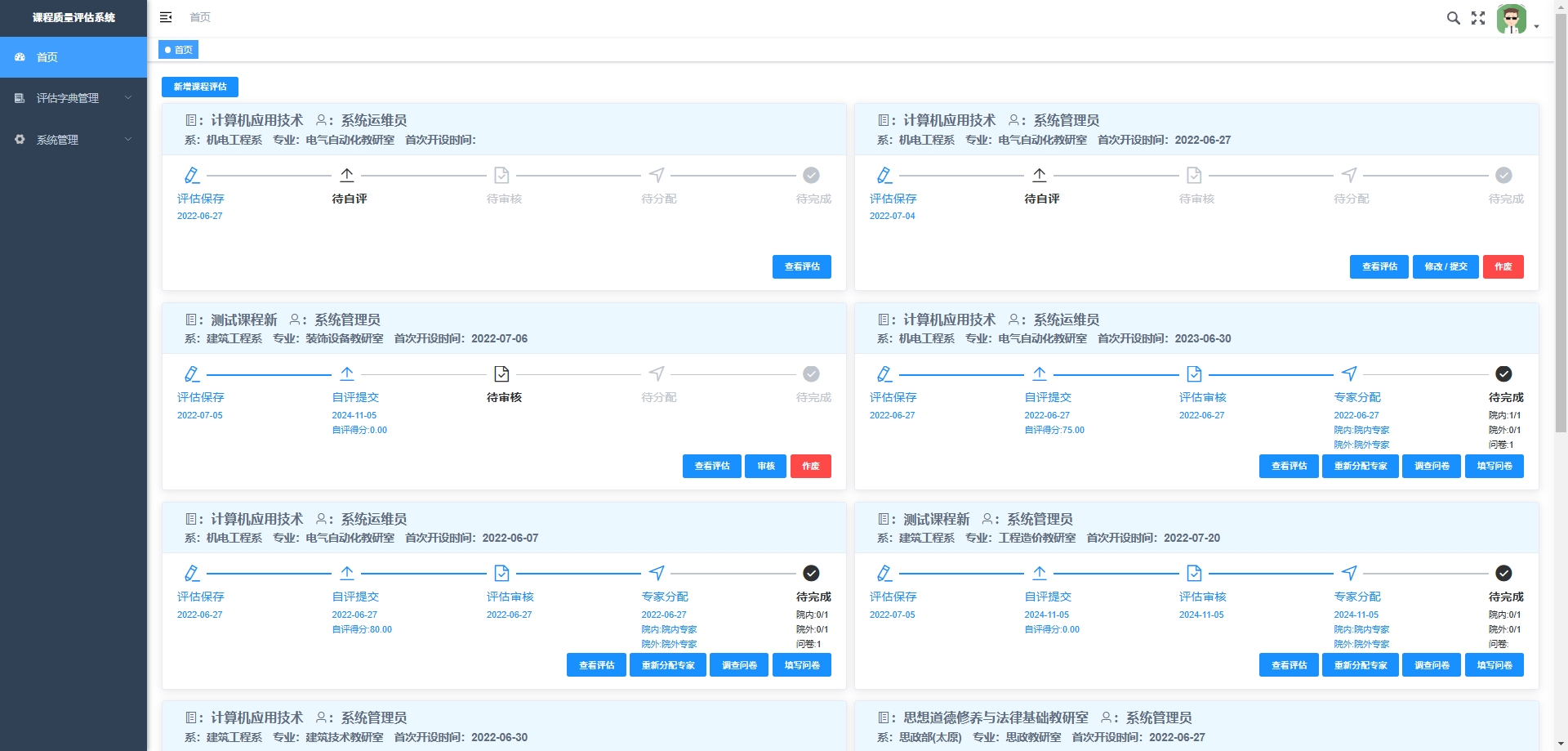 - 评估课程管理:管理评估相关的课程内容,包括课程设置、课程进度和课程资料的更新。