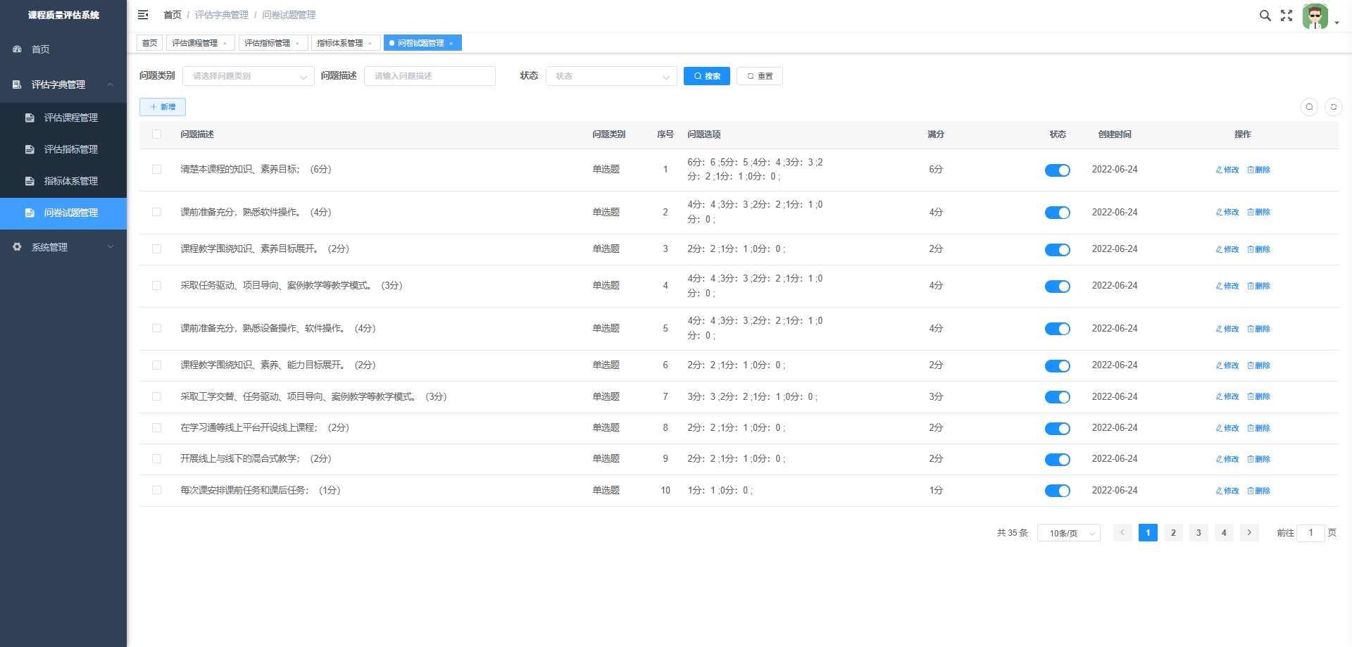 - 问卷试题管理:设计、编辑和管理问卷调查的题目,用于收集数据和进行评估分析。