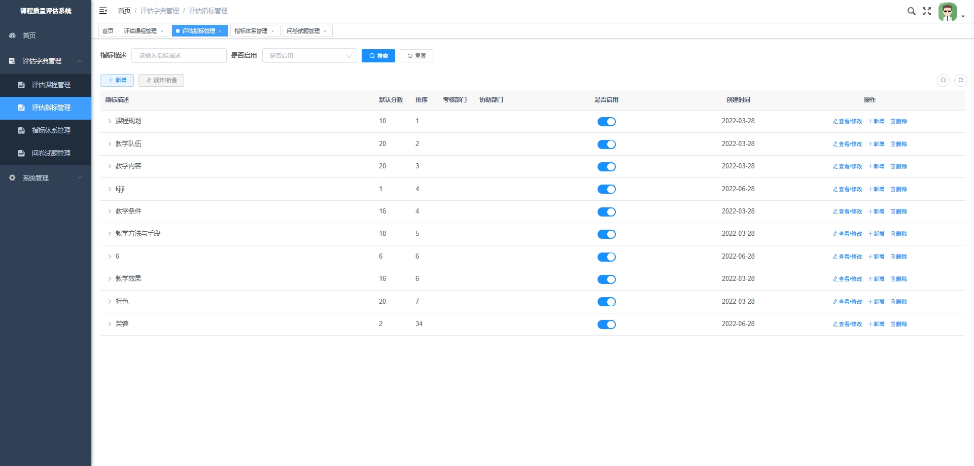 - 指标体系管理:构建和维护评估指标体系,确保评估指标的系统性和完整性。