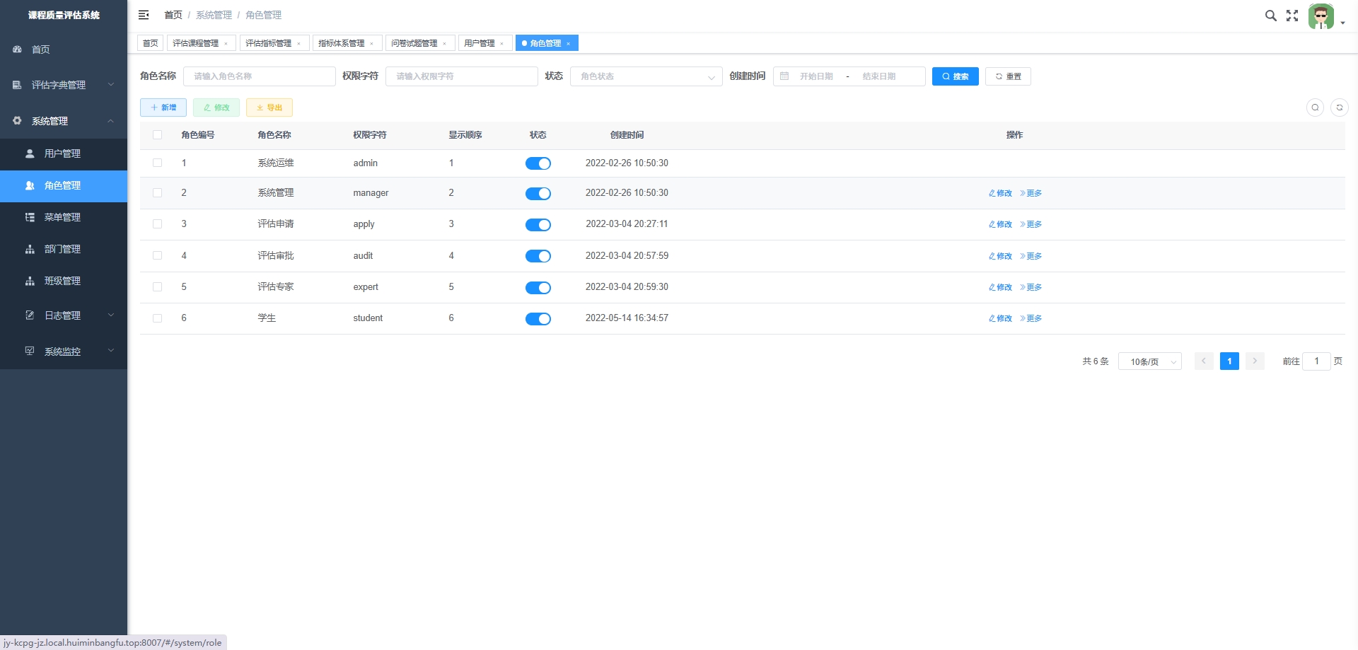 - 角色管理:定义和管理不同角色及其权限,实现系统权限的精细化控制。
