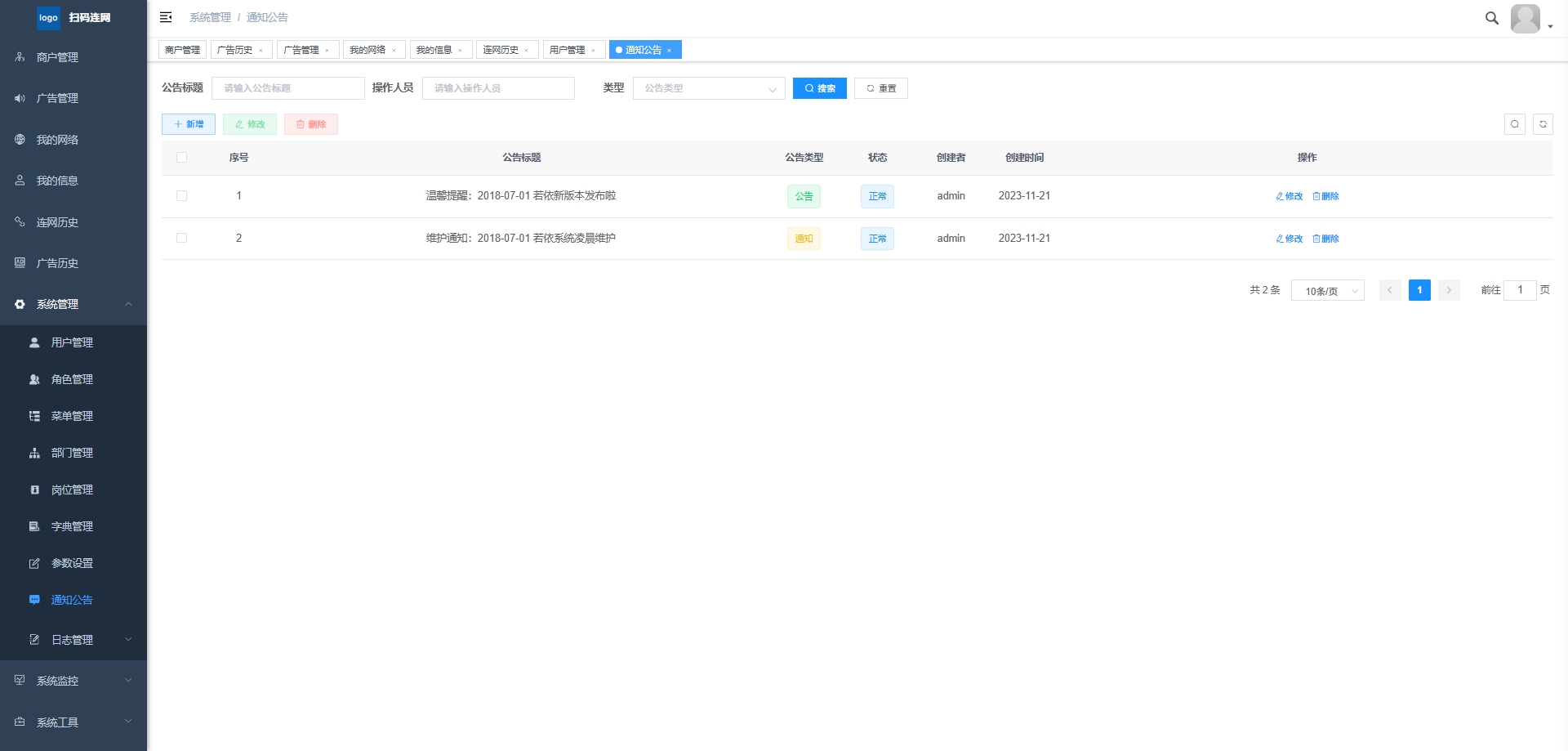 - 通知公告:发布和管理系统通知和公告,确保信息及时传达给用户。