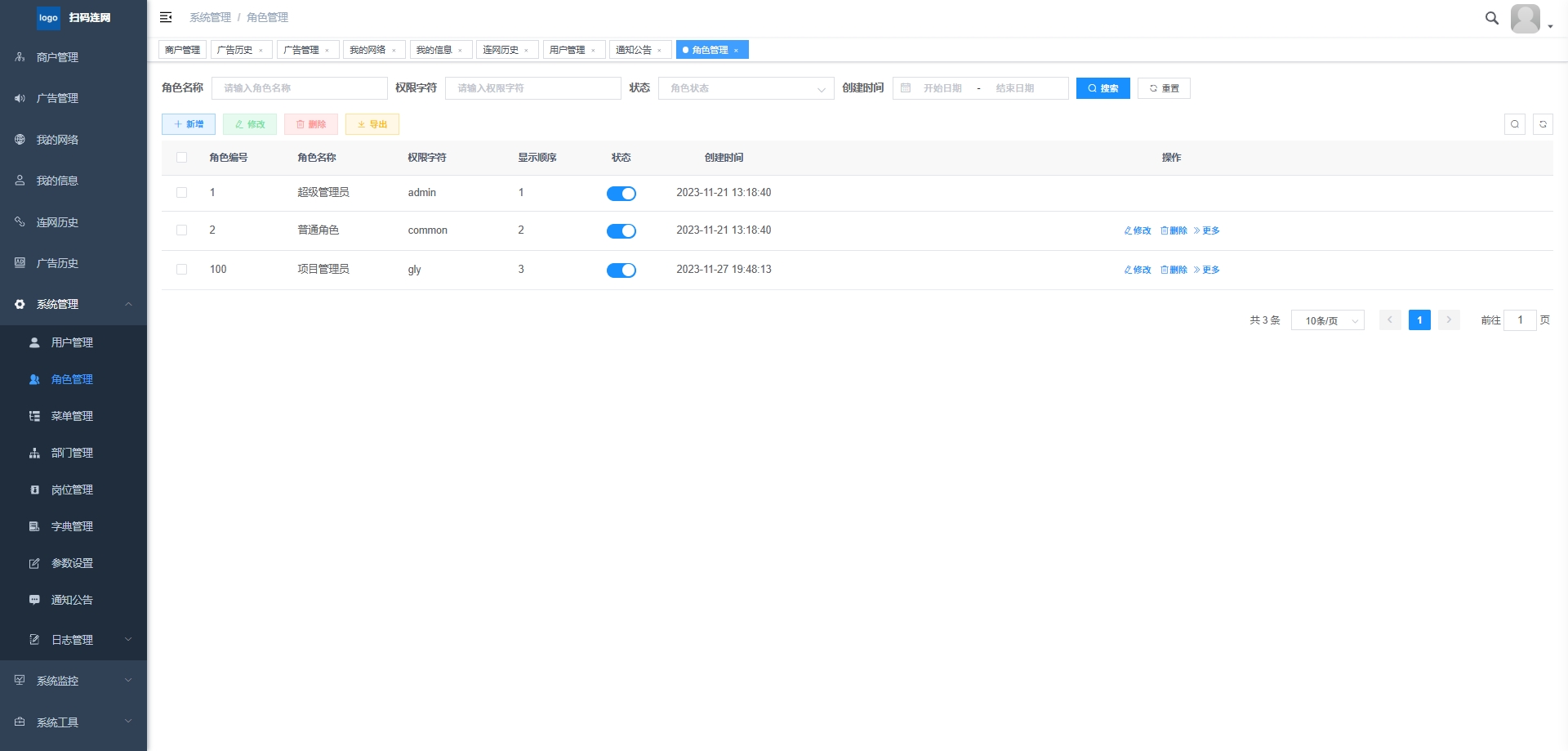 - 菜单管理:配置系统菜单项,控制用户界面的显示内容和访问权限。