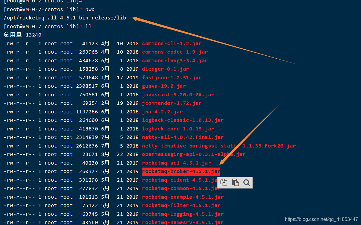 (1)CLASSPATH为:${BASE_DIR}/lib/rocketmq-broker-4.5.1.jar:${BASE_DIR}/lib/*:${BASE_DIR}/conf:${CLASSPATH} rocketmq-broker-4.5.1.jar需要查看lib目录下的版本