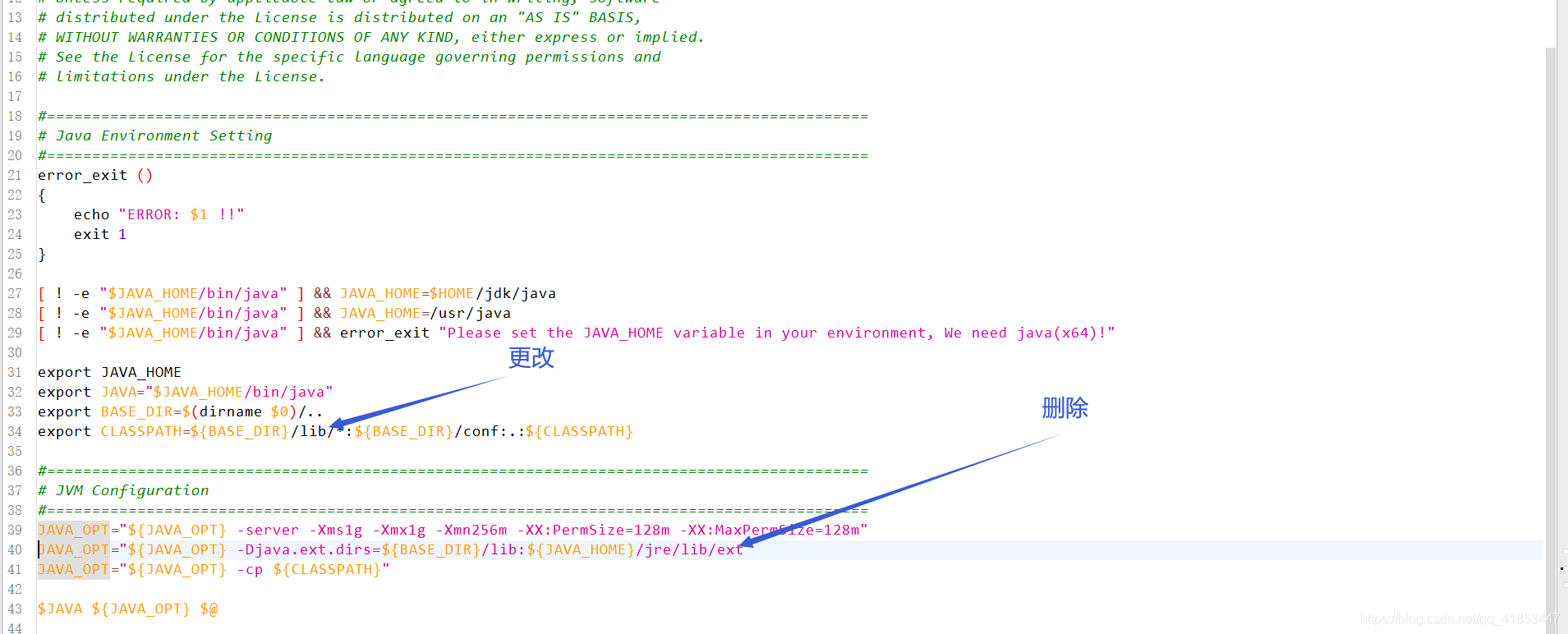 (1)JAVA_OPT="${JAVA_OPT} -Djava.ext.dirs=${BASE_DIR}/lib:${JAVA_HOME}/jre/lib/ext"