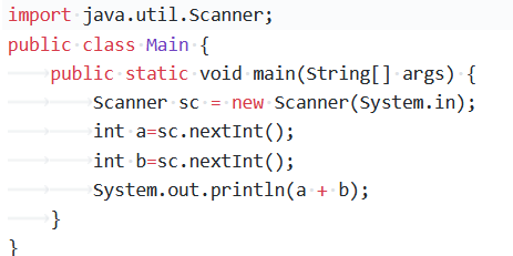 最基本的输入输出,熟练运用import java.util.Scanner;以及Scanner sc = new Scanner(System.in);熟知输入的规则和格式,注意int类型则为nextInt()这种规则即可,没有什么难度。