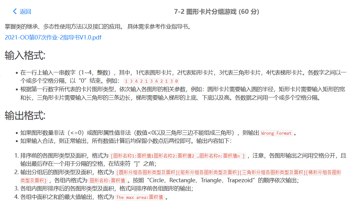 在之前的题目集中,也出现过类似这种题目,先输入各图形卡片代表的数字 ,然后根据这个顺序来填写对应图形的半径,长宽,高等,输出对应的图形类型和面积;再对他们进行排序。唯一不同的是多加了一种梯形类型的图形。