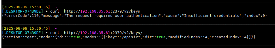 经过渗透测试,发现etcd未授权访问(v2),可以通过restful api方式,获取敏感数据或集群被控制。