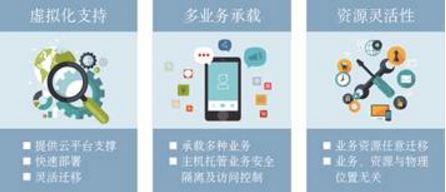 互联网行业数据中心的基本特征就是服务器的规模偏大。进入云计算时代后,其业务特征变得更加复杂,包括:虚拟化支持、多业务承载、资源灵活调度等(如图1所示)。与此同时,互联网云计算的规模不但没有缩减,反而更加庞大。这就给云计算的网络带来了巨大的压力。