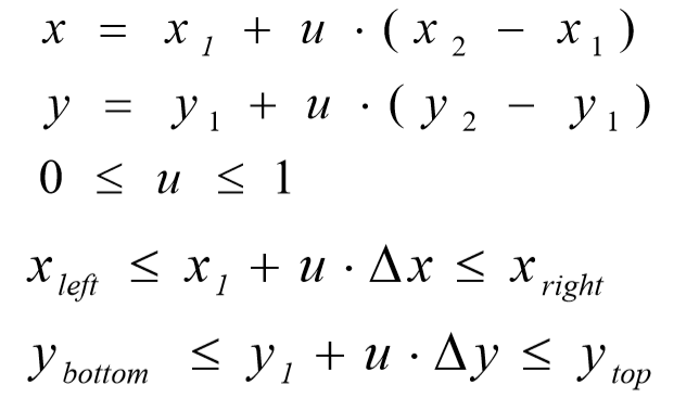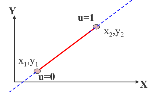 已知一条线段的起点(x1,y1)、终点(x2,y2),就可以通过一个参数u,表示这条线段所在直线上的任意一个点(x,y)