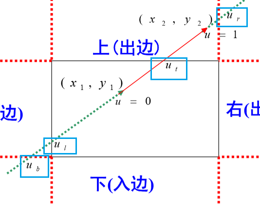 uk是窗口边界及其延长线的交点的对应参数值,将这个参数值代入方程就可以获取该点的位置