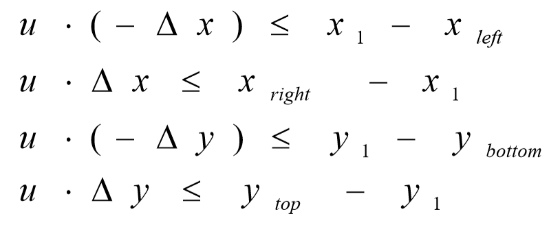 现在我们要的点(x,y)需要在窗口内,那么这个点的参数方程就要满足下面的不等式关系